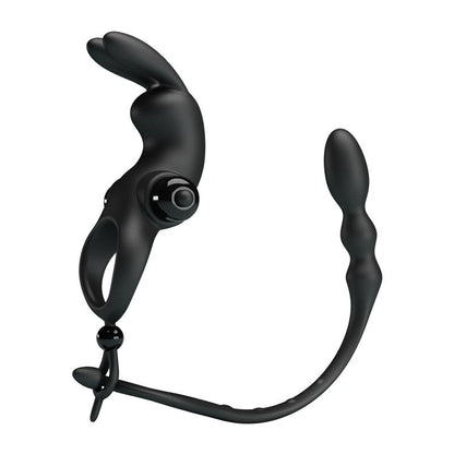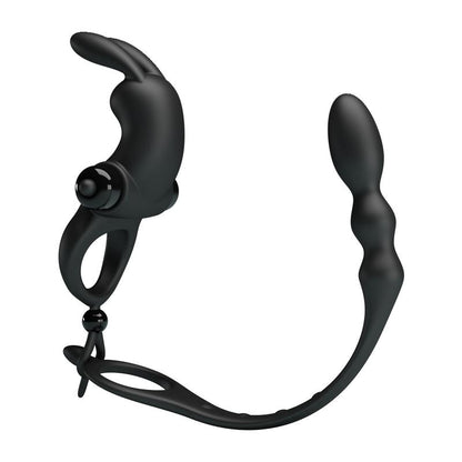 Este anillo para el pene cuenta con un complemento especial, un plug anal/cadena anal. Mientras el anillo envuelve tu pene y mejora tu erección, el plug anal hará que aumente tu placer. Pero no solo eso, sino que además cuenta con un conejito para estimular el clítoris de tu pareja. Cuenta con 10 funciones de vibración y es flexible para una mayor comodidad. Su diseño de 3 niveles te llena de excitante estimulación.