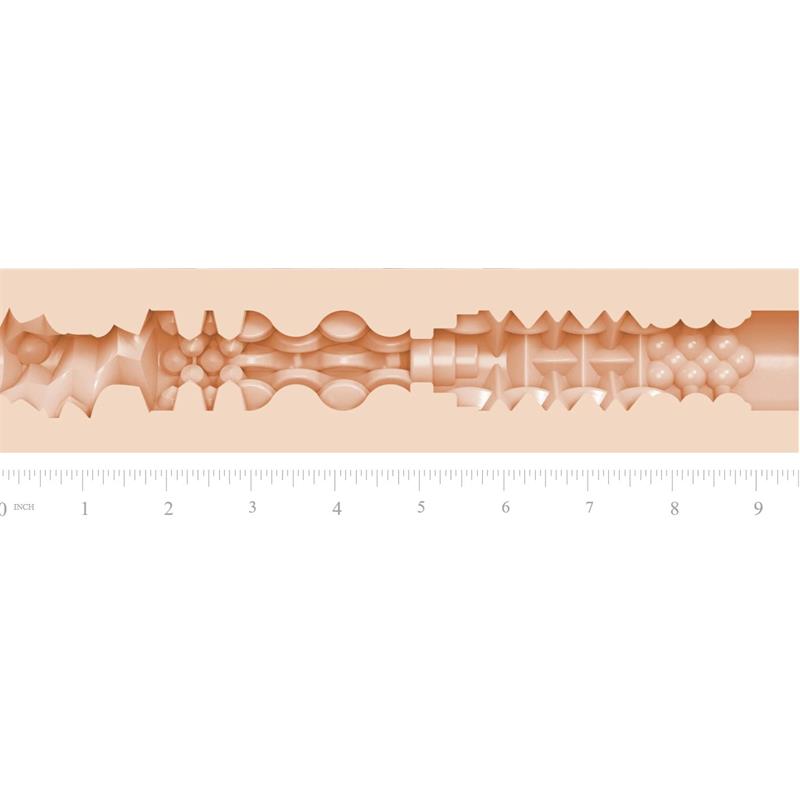 Dentro de este masturbador encontrarás un túnel estriado, lleno de textura y placer. Su orificio en forma de vagina está apretado, ideal para unas sensaciones extras. Por dentro, las mangas Fleshlight están fabricadas de un material realista, como si fuera piel real, adaptándose a la temperatura de tu cuerpo, proporcionando mucho más realismo. Su diseño es espectacular tanto por dentro como por fuera. Su manga es una réplica exacta de la vagina de esta actriz, lo que lo convierte en una pieza de placer única y súper exclusiva.