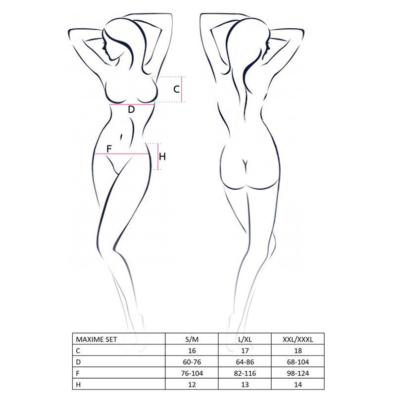 Elegancia, sensualidad, comodidad? mucho más adjetivos se podrían decir al set Maxime. Cuenta con un sujetador con un patrón de flores semi transparente, con un tanga y un liguero a juego.